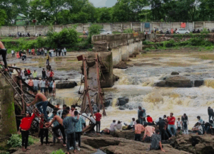 पुणे के पास इंद्रायणी नदी पर बना एक पुल आज ढह गया, जिससे कई पर्यटकों के डूबने की आशंका है। बचाव अभियान अभी चल रहा है, रिपोर्टों से पता चलता है कि वीकेंड की भीड़ के कारण पुल पर बहुत ज़्यादा भार था।