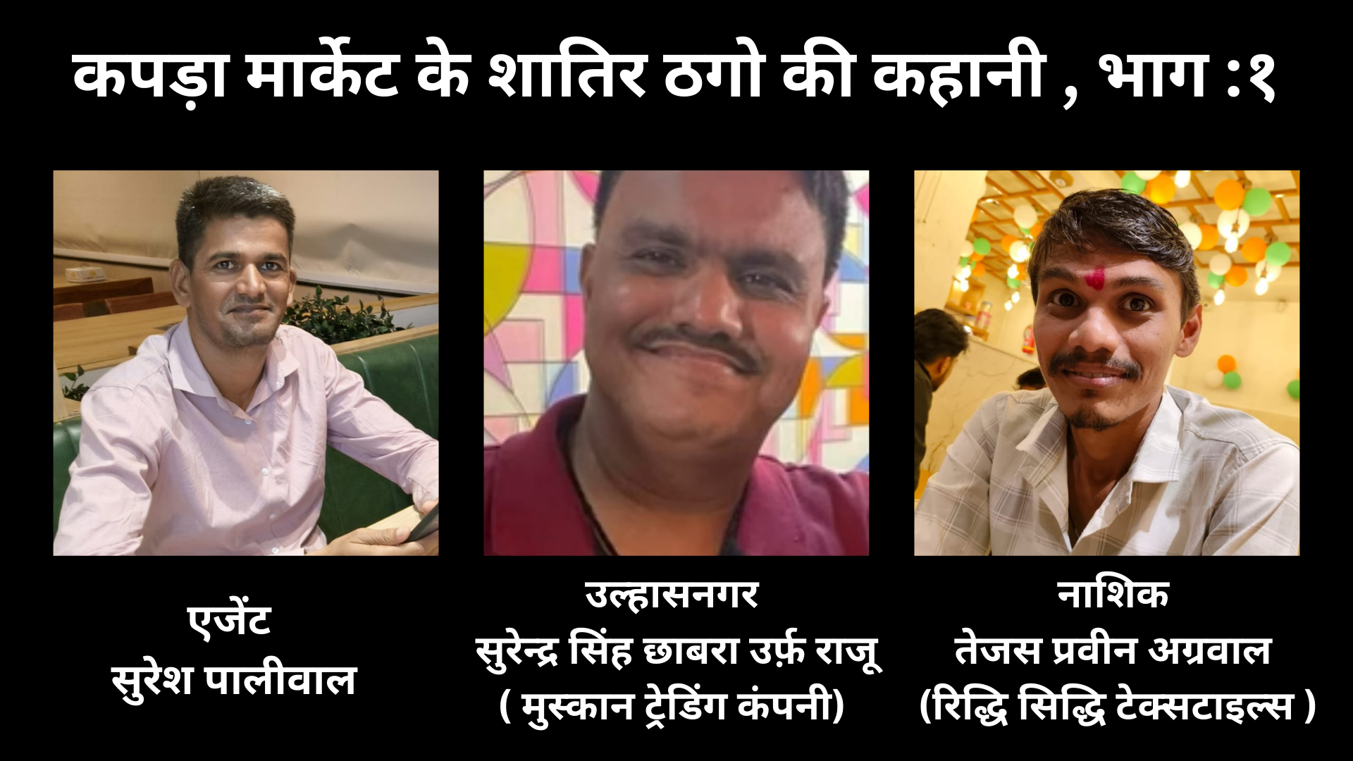 देश के अलग अलग कपड़ा मंडियों में व्यापारियों से करोड़ो की ठगी करने वाले महाठगों की कहानी का यह पहला…